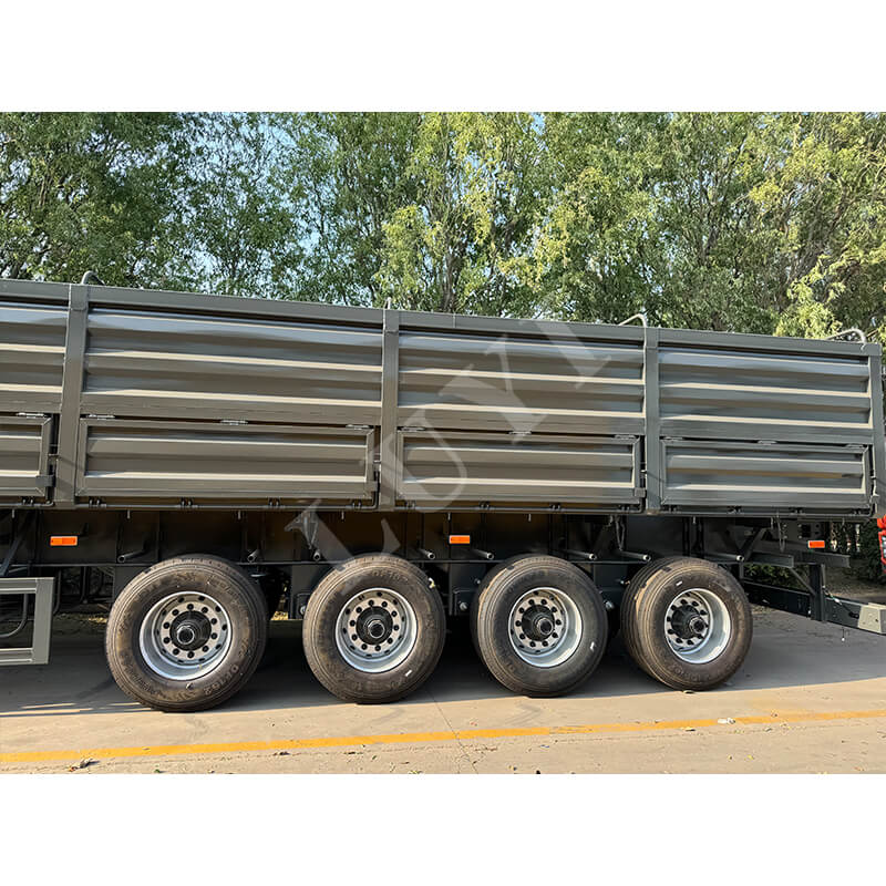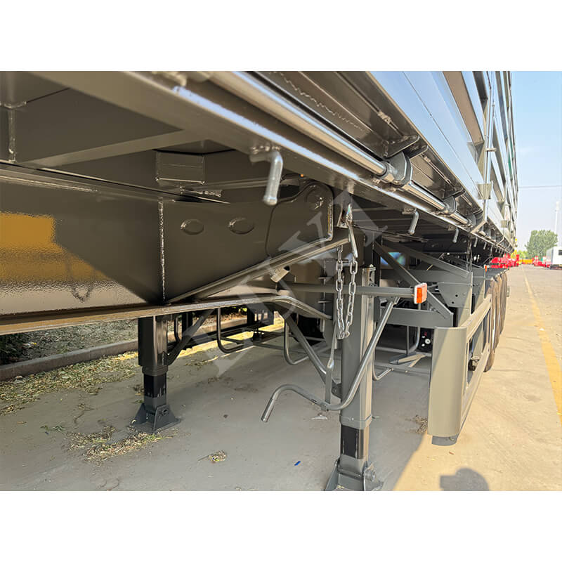 LUYI 60-tons klass 4-axlad semitiptrailer är skräddarsydd för tunga bulklasttransporter i scenarier som gruvor och infrastrukturprojekt. Den har en hydraulisk avlastningsstruktur med sidled, vilket möjliggör snabb lossning i trånga utrymmen och fullständig tömning av fack inom några minuter, vilket avsevärt förbättrar fraktomsättningens effektivitet. Kärnbärande komponenter är gjorda av slitstarkt stål med hög hållfasthet, tillsammans med en 4-axlig design och luftfjädrande krockkuddar. Detta fördelar inte bara trycket från 60 ton tunga laster och uppfyller regulatoriska krav, utan justerar också stötdämpningshårdheten efter lasten, vilket minskar lastskakningar och vägpåverkan. Hela fordonet balanserar effektiv lossning, hållbarhet vid tung last och körstabilitet, vilket gör det till ett pålitligt val för tunga bulktransporter.