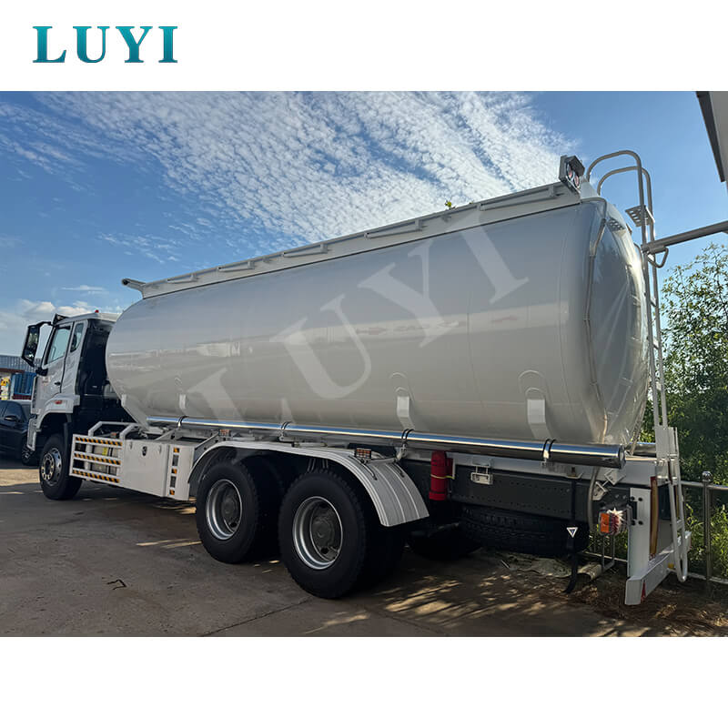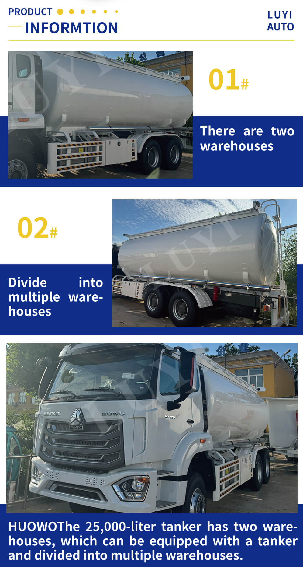 Denna oljetank semitrailer är från Shandong, Kina, och tillhör varumärket Sinotruk Howo NX. Den är speciellt utformad för oljetransport. Fordonet har en 6×4 drivkonfiguration, med en totalvikt på ≥30 ton och en lastkapacitet på 31-40 ton. Tankvolymen är 25 000 liter, vilket effektivt kan möta behoven för storskalig oljetransport.