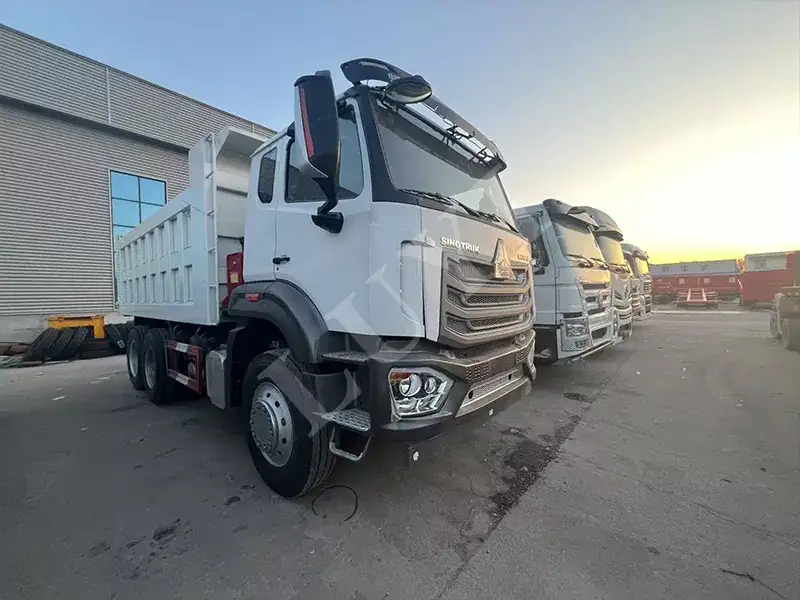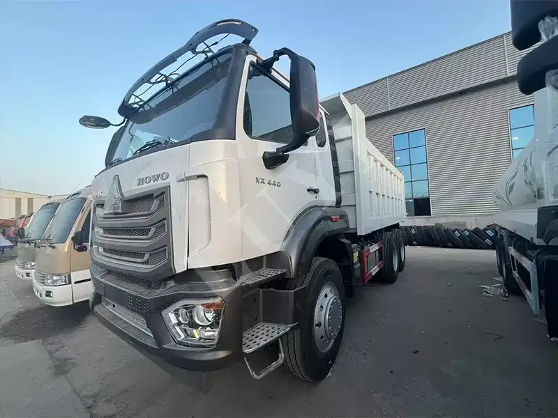 Howo NX440 Dump Truck är utrustad med Weichai WP4.6NQ240E62-motor, Howo HW95508SC2 Manual 8-växlad växellåda, chassi adopterar rakt ut balkdesign och hytten är utrustad med krockkuddar. Denna modell är utrustad med en 400-liters bränsletank med stor kapacitet, som är lämplig för långväga transportbehov.