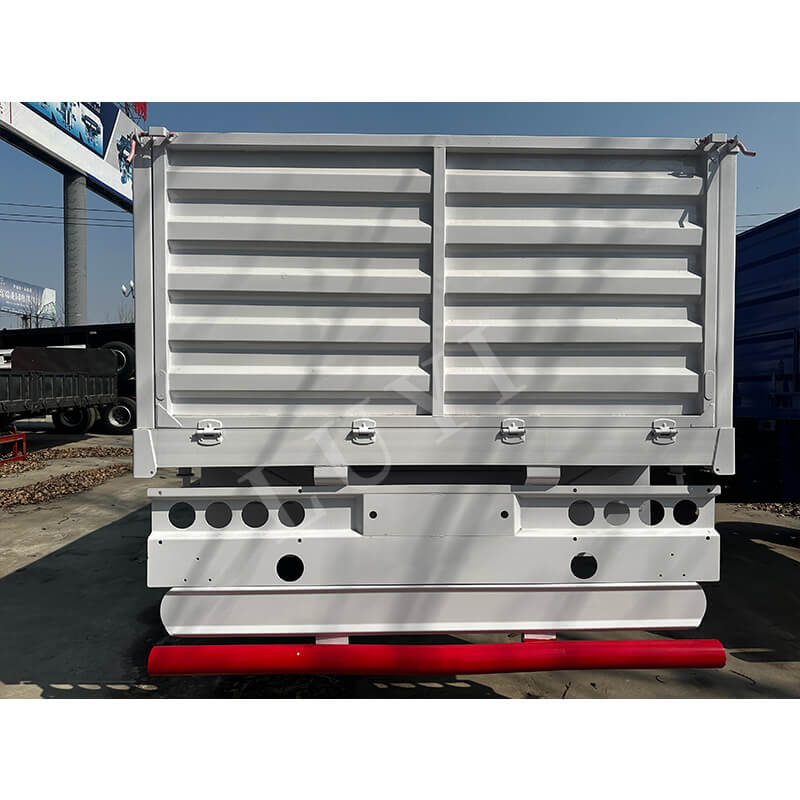 Den mäter 12500×2500×1600 mm och är utrustad med 3 axlar (tillval från välkända märken som Fuhua, BPW, SAIF och CIMC) och dubbla fjädringsalternativ (mekanisk och luftfjädring) för smidig körning. Standardstödbenen på 28 ton säkerställer säker lastning och lossning, medan däck i specifikationer 12R22.5/12.00R20/11R22.5 anpassar sig till olika vägförhållanden. Dessutom förbättrar bladfjädrarna 90×13×10 mm bärförmågan, den mekaniska stegen förbättrar driftsbekvämligheten, färgerna är anpassningsbara och det ventilstyrda bromssystemet ökar körsäkerheten och ger tillförlitligt stöd för transport.