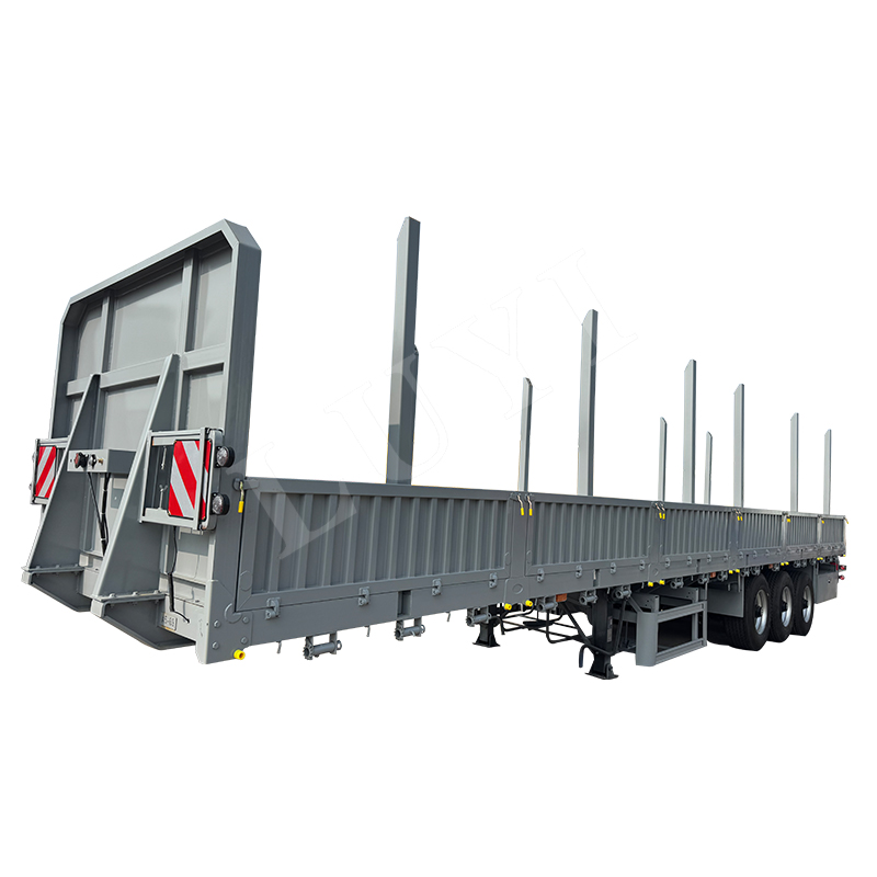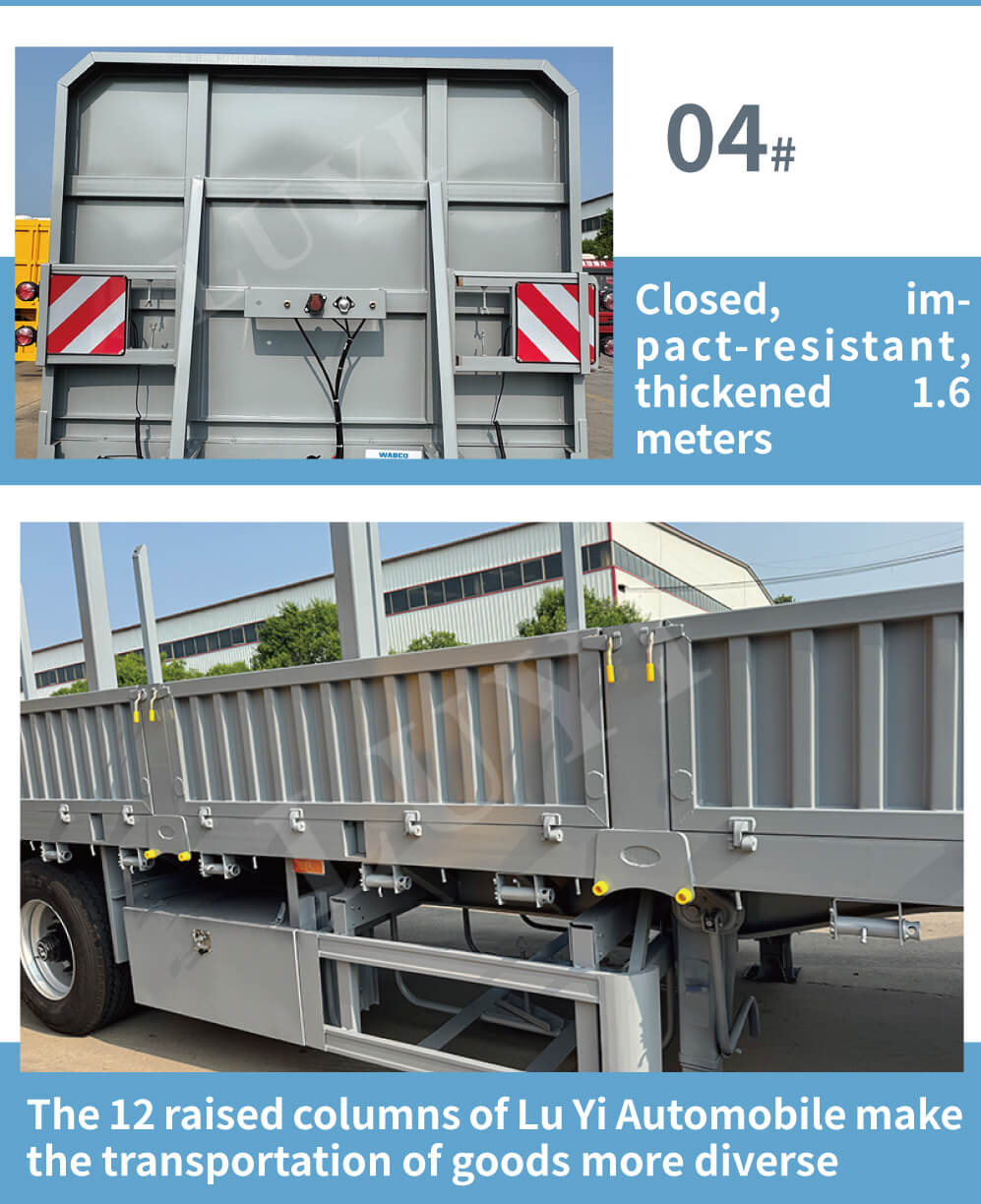 ​Den 3-axliga sidoväggssemitrailern med pelare från LUYI, ett varumärke baserat i Shandong, Kina, är ett optimalt val för bulklast och containertransporter. Den är tillverkad av högkvalitativt stål och har exakta mått på 12500x2500x1600mm och en maximal nyttolastkapacitet på 60 ton, vars kraftfulla bärighet lätt kan möta olika tunga transportbehov.