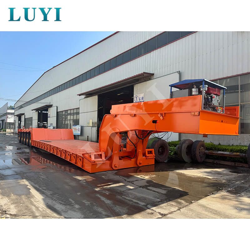 LUYI 5-axlad avtagbar svanhals lågbäddspåhängsvagn, tillverkad i Shandong, Kina, är ett högpresterande tunga transportfordon skräddarsytt för ultratunga lastbehov.