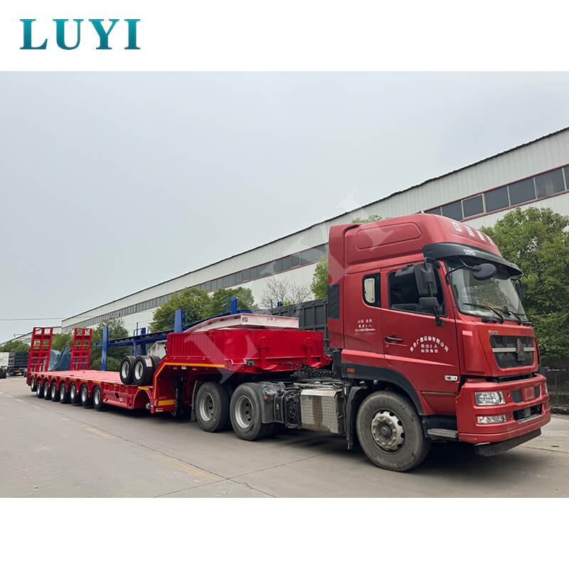 LUYI 8-Axle 120T Air Suspension Low-Bed Semi-Trailer, med ursprung från Shandong, Kina, är en högpresterande semitrailer speciellt designad för tung utrustningstransport. Tillverkad av högkvalitativt stål, den mäter 22000×3000×1600 mm med en maximal nyttolast på 100T, vilket enkelt uppfyller transportbehoven för olika tung utrustning.