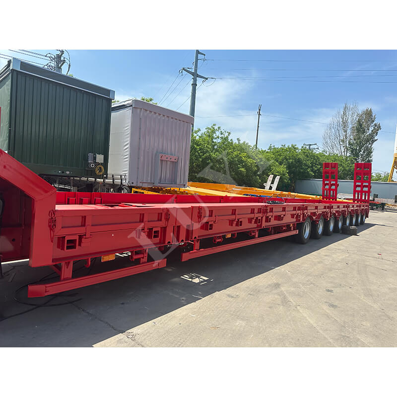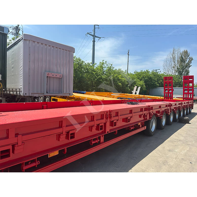 Konstruerad med högkvalitativt kolstål eller aluminium, balanserar den hållbarhet och lättviktskrav, med en maximal nyttolast på 100 ton för att enkelt hantera olika scenarier för transport av tung utrustning. Utrustad med en 8-axlig design, erbjuder den valfria Fuwa- eller BPW-axlar, parade med antingen mekanisk fjädring eller luftfjädringssystem, vilket säkerställer körstabilitet och lastsäkerhet. Tre däckspecifikationer finns tillgängliga: 12R22.5, 12.00R20 och 11R22.5, lämpliga för olika vägförhållanden.