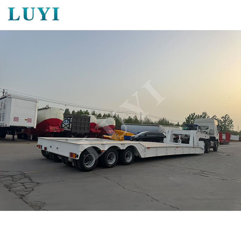 Tillverkad i Shandong, Kina, är LUYI 3-Line 6-axliga fällbara svanhals lågbäddsvagn en professionell påhängsvagn speciellt utformad för transport av tung utrustning.