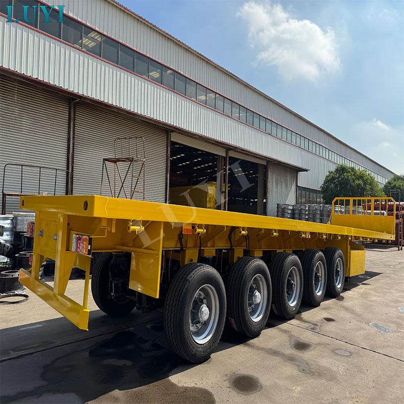 För att säkerställa5-axlade flak semitrailersLUYI:s FoU-team har sömlöst anpassat sig till Tunisiens användningsscenarier och genomfört flera omgångar av optimering och uppgraderingar. För att hantera de komplexa vägförhållandena i vissa regioner i Tunisien, har fjädringssystemet på 5-axlade flatbädds semitrailers genomgått specialiserade justeringar för att förbättra stötdämpningsprestanda och framkomlighet vid körning. Med hänsyn till det lokala högtemperaturklimatet, är bromssystemet och däcken på 5-axlade flatbäddsvagnar tillverkade av högkvalitativa, högtemperaturbeständiga och slitstarka komponenter, vilket effektivt förlänger livslängden för 5-axliga flatbäddssemitrailers i extrema miljöer. Dessutom erbjuder kungsstiftet med 25-flatbäddar: (50 mm) och 3,5” (90 mm), som flexibelt kan matcha de vanliga traktorhuvudena i Tunisien, vilket minskar användartröskeln för kunderna.