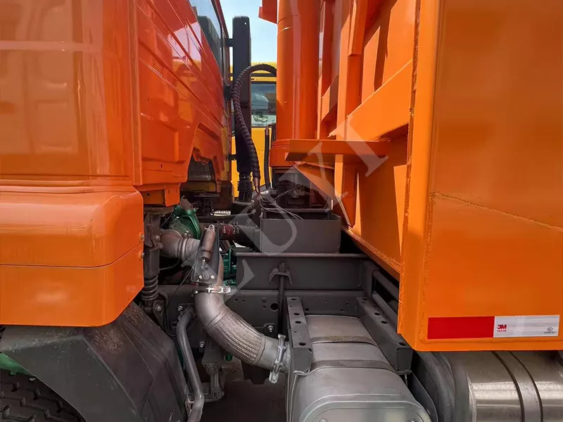 Sinotruk Dump Truck är också utrustad med ett högkvalitativt hydraulsystem, som snabbt kan lossa lasten i facket och uppnå effektiv dumpningsfunktion. Det hydrauliska systemet gör lossningsprocessen snabbare och bekvämare och är lämplig för arbetsmiljöer som kräver ofta belastning och lossning.