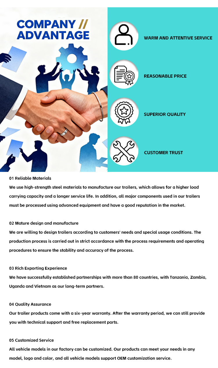 Skicka oss din förfrågan för att få en skräddarsydd offert baserad på dina faktiska transportbehov. Låt oss veta släpvagnstyp, last eller nyttolast, vägförhållanden, destination och kvantitet, så kommer vårt team att svara med en lämplig rekommendation så snabbt som möjligt.