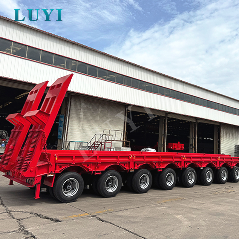Den 10-axlade 80-100 ton lågbädds- semitrailern från LUYI, med ursprung i Shandong, Kina, är ett utmärkt val för tung lasttransport. Den är tillverkad av högkvalitativt stål och erbjuder två storlekar: 1780030001500 mm och 1800030001500 mm, med en maximal lastkapacitet på 100 ton och en normal märklast på 80 ton, med extraordinär bärighet.