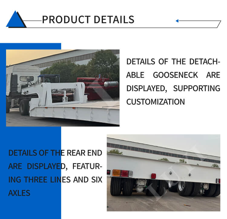 Tillverkad i Shandong, Kina, är LUYI 3-Line 6-axliga fällbara svanhals lågbäddsvagn en professionell påhängsvagn speciellt utformad för transport av tung utrustning.