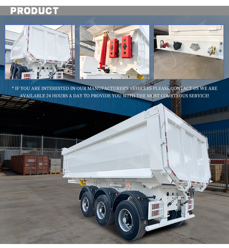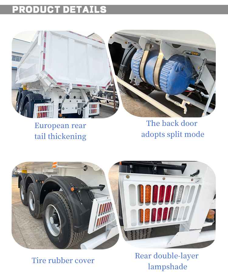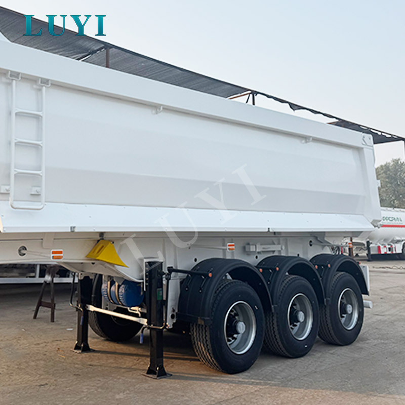 Den LUYI treaxlade U-formade hydrauliskt justerbara semitrailer med baktipp är en effektiv transportutrustning speciellt utformad för transport av material som sand, grus och spannmål. Det kommer från högkvalitativ tillverkning i Shandong, Kina.