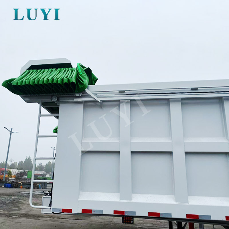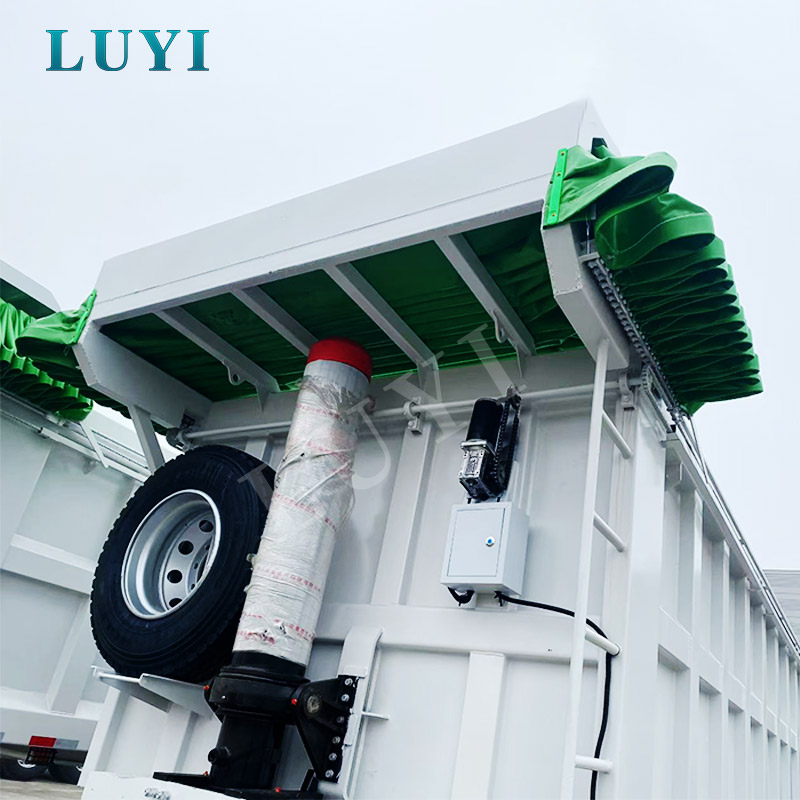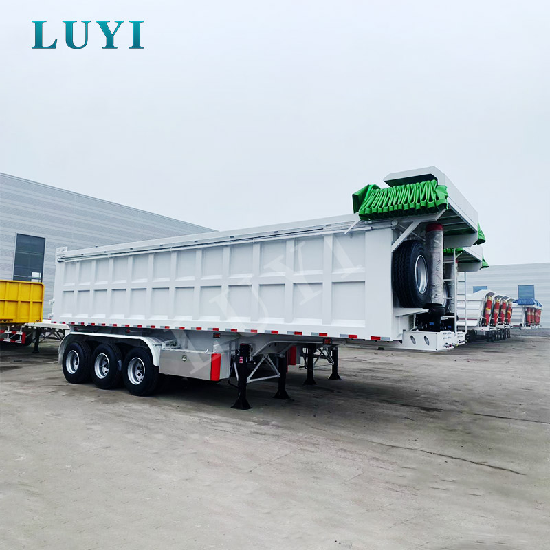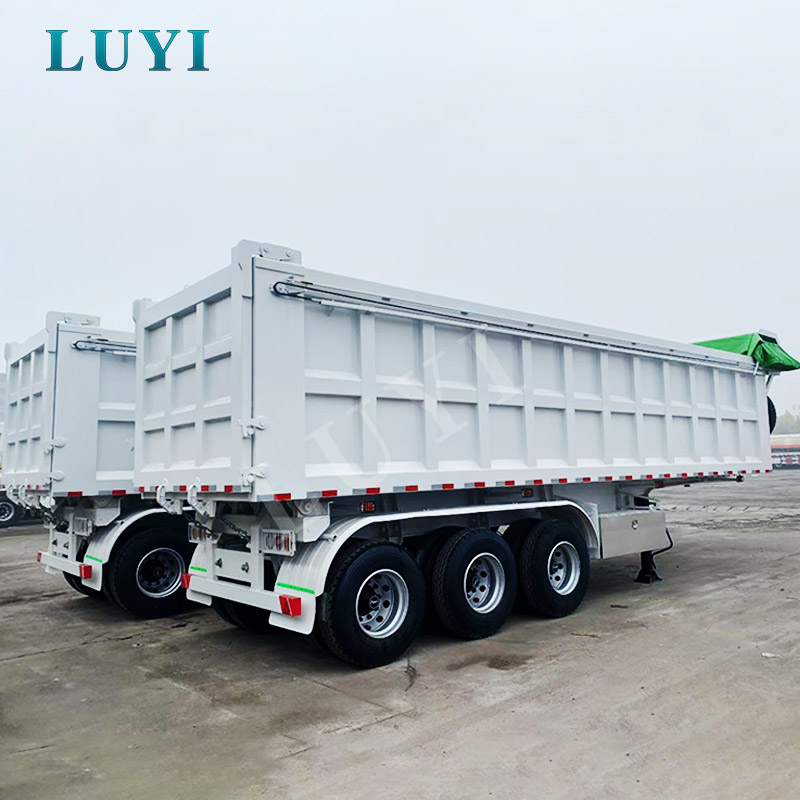 Den vita 3-axliga baktilltande semitrailern av märket LUYI, som kommer från högkvalitativ tillverkning i Shandong, Kina, är en effektiv lastbilssläp som är speciellt utformad för tunga laster. Produkten är tillverkad av höghållfast stål, med en ......